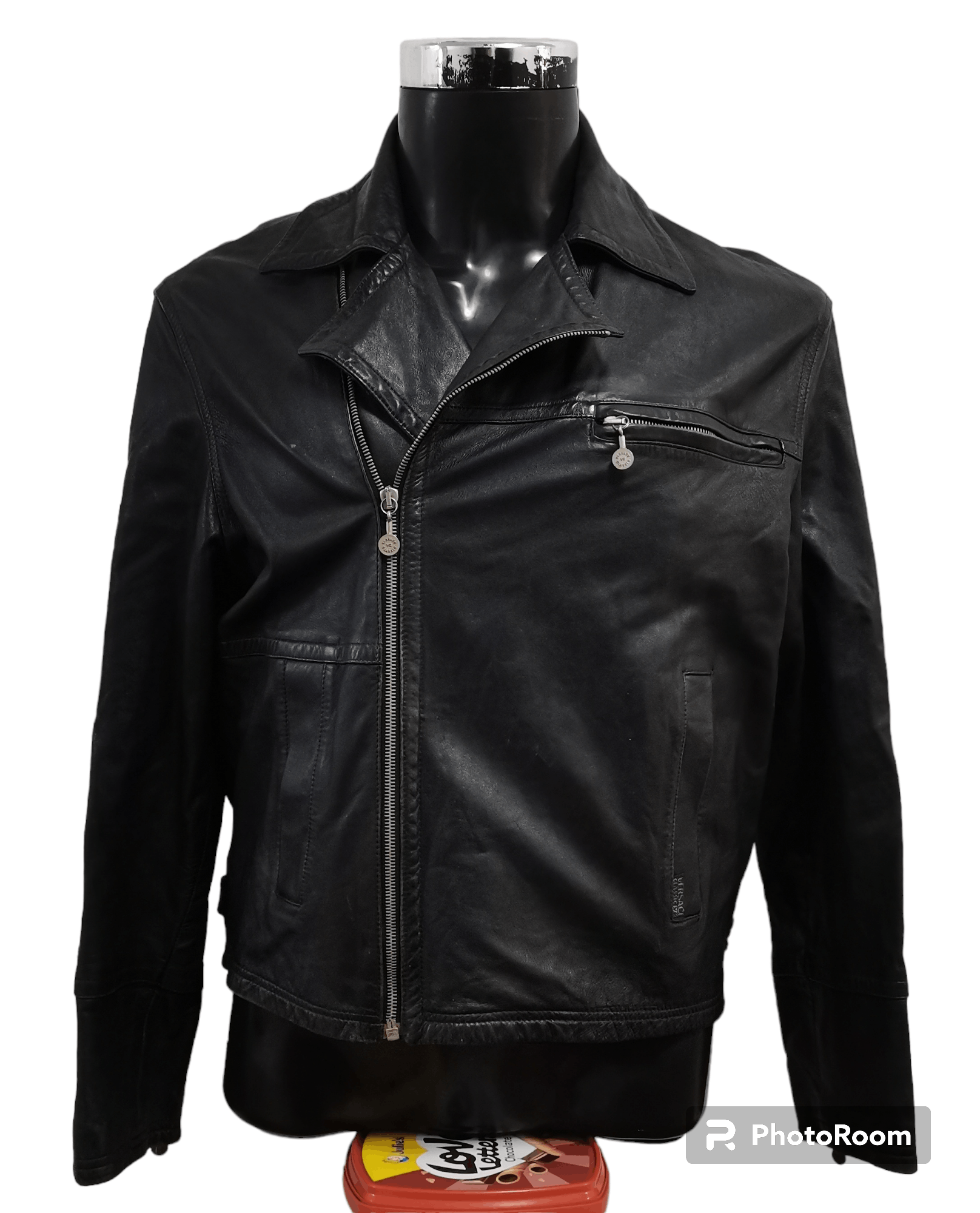 GIANNI VERSACE man black leather jacket VALOIS VINTAGE PARIS Very well made.