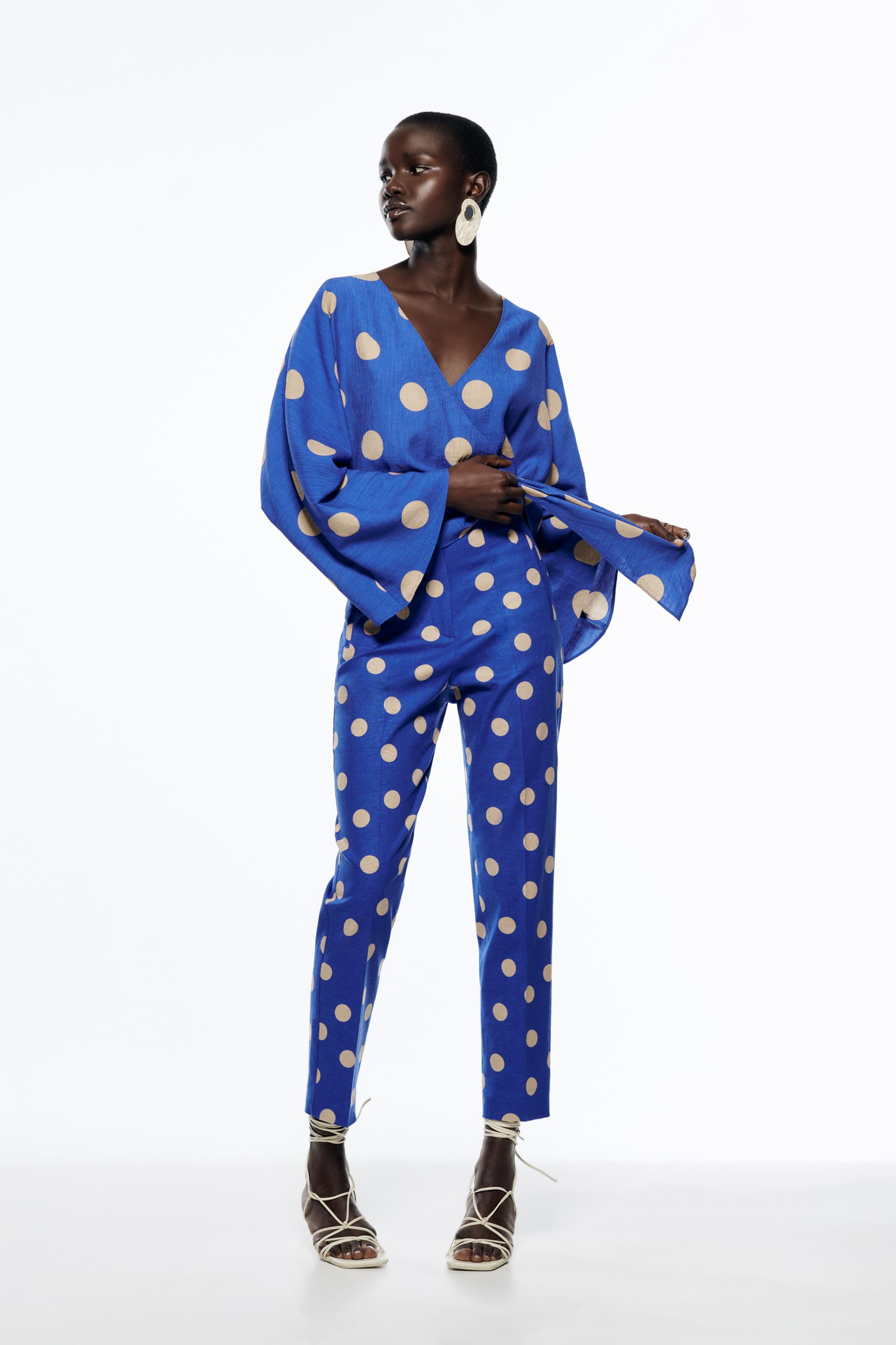 POLKA DOT LINEN BLEND TROUSERS Sand Blue ZARA United Kingdom Very well made.