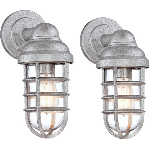John Timberland Marlowe Industrial Outdoor Wall Lights Set of 2 Galvanized Steel Cage Frame 13 1 4 Clear Glass for Post Exterior Barn Deck House Yard Very well made.