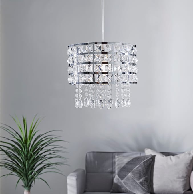 Home Collections Chrome Diamante Pendant Shade ceiling lights lampshades hanging silver shiny reflective unique lighting metal acrylic 10949641 Home Bargains Very well made.