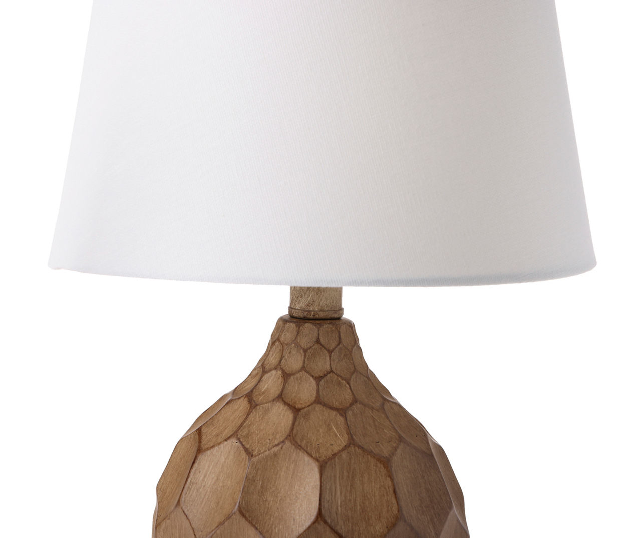 Brown Faceted Wood Table Lamp With White Shade Very well made.