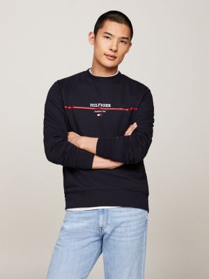 Logo Stripe Crew Neck Terry Sweatshirt Blue Tommy Hilfiger Very well made.