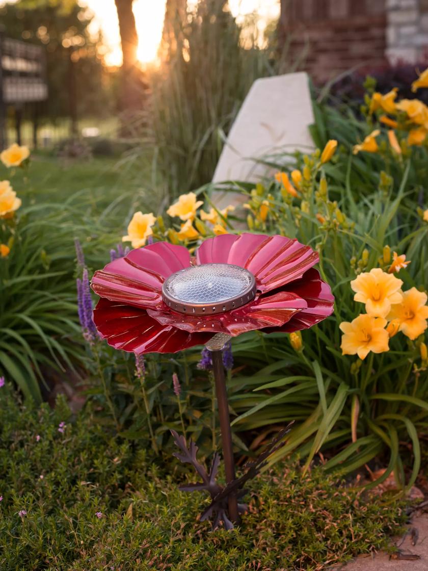 Boston Harbor Light Solar MTL Poppy Flower 26145 Very well made.