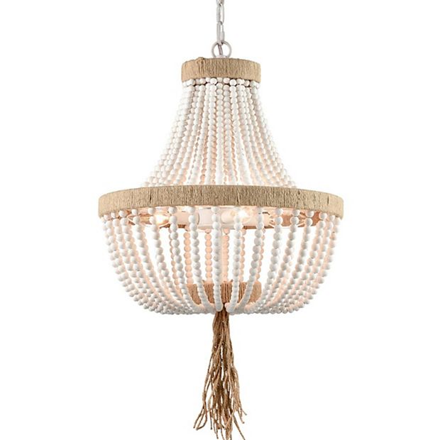 White Wood Beaded Farmhouse Large Dining Room Pendant Chandelier Claxy Very well made.