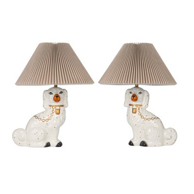 Creative Co op Hand Painted Ceramic Vintage Reproduction Staffordshire Table Lamp White Set of 2 Very well made.