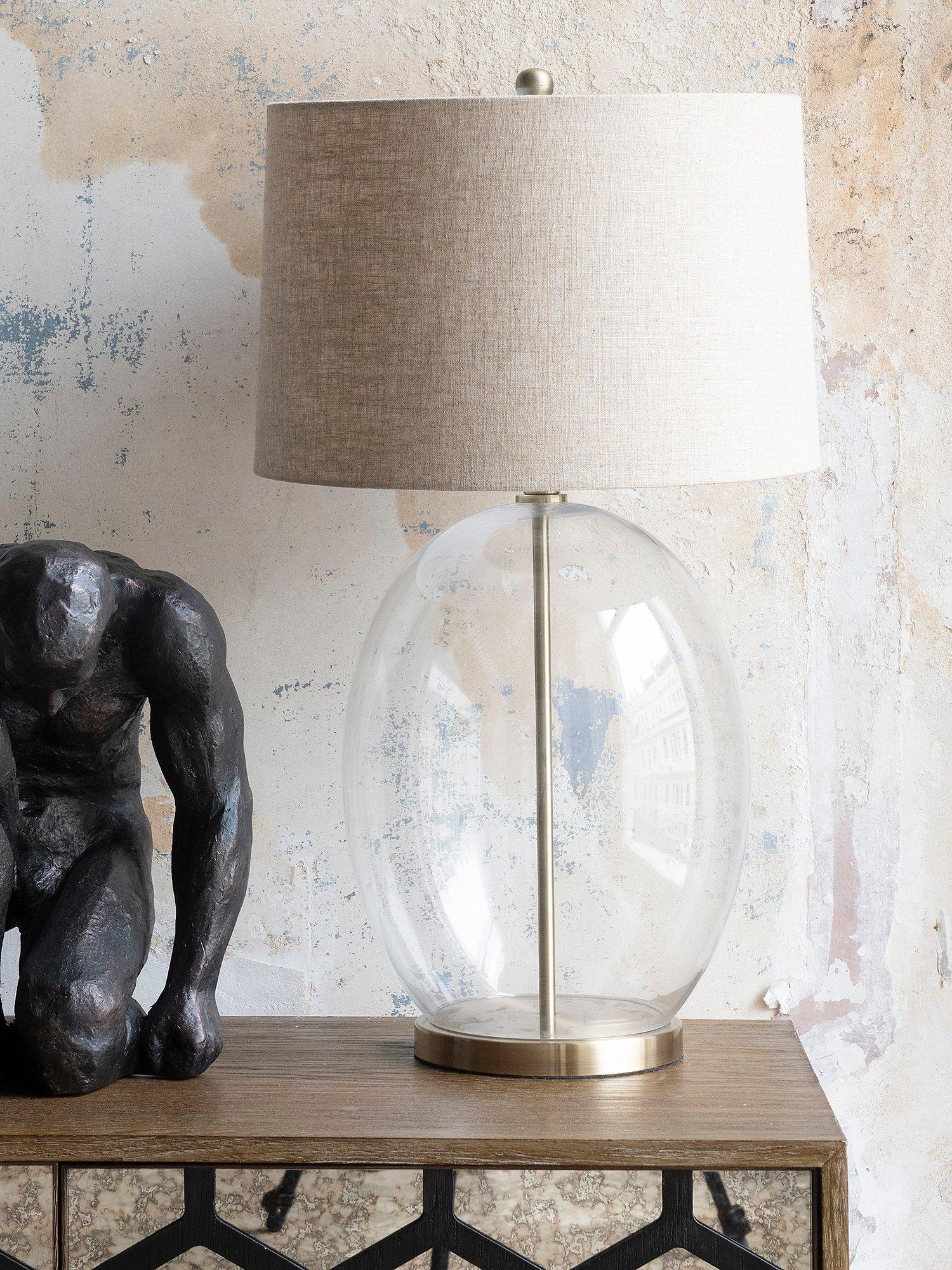 One.World Glass Base Linen Shade Table Lamp Clear Very well made.
