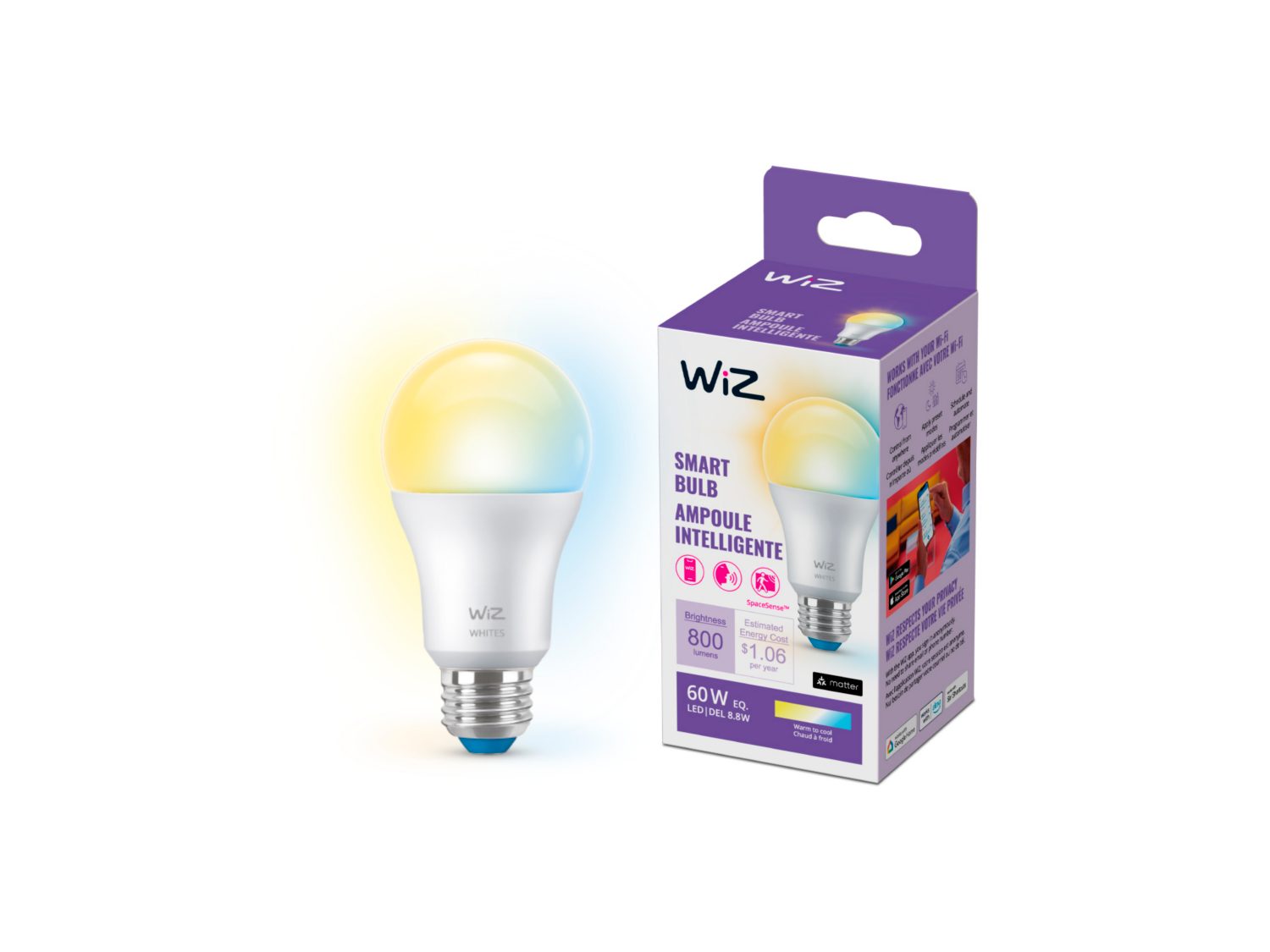WiZ Connected 60W A19 LED Smart Light Bulbs Connects to Your Wi Fi E26 Smart Bulb Control with Voice or App Activate with Motion Matter Compatible 1 Pack Amazon Very well made.