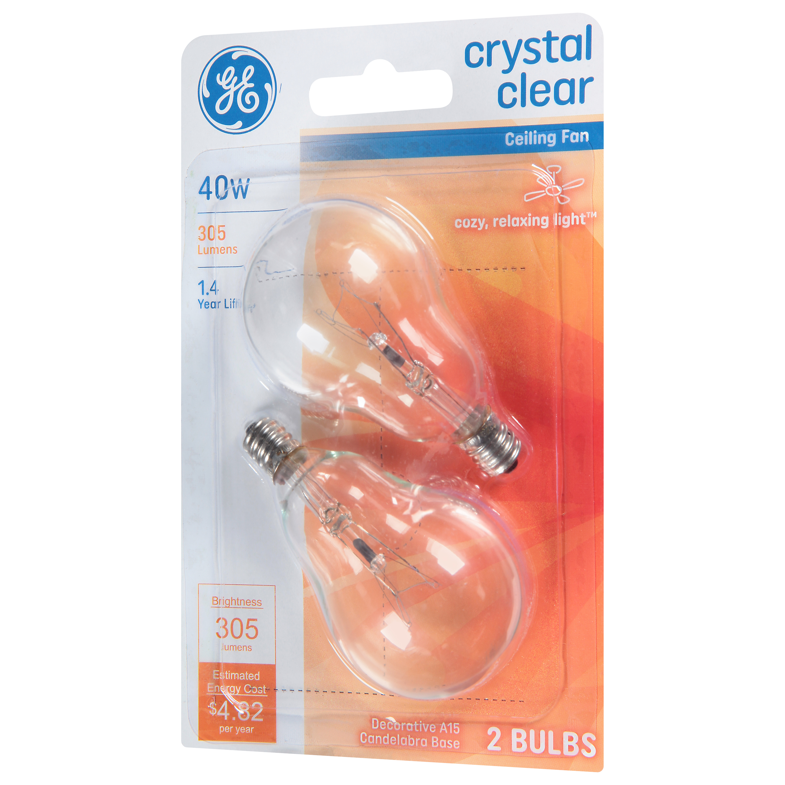 GE Ceiling Fan Light Bulbs Crystal Clear 40W 2 ct pkg GIANT Very well made.
