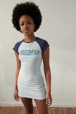 UO Blue Surfs Up Short Sleeve Mini Dress Very well made.