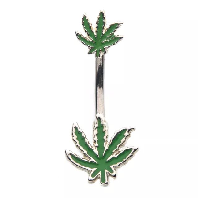 Marijuana Pot Leaf Belly Button Rings. Hippy flare belly bars. The Belly Ring Shop Very well made.