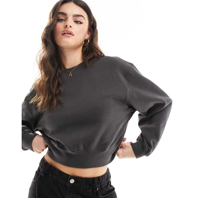 Weekday Voluminoses Sweatshirt mit kurzem Schnitt in Dunkelgrau ASOS Very well made.