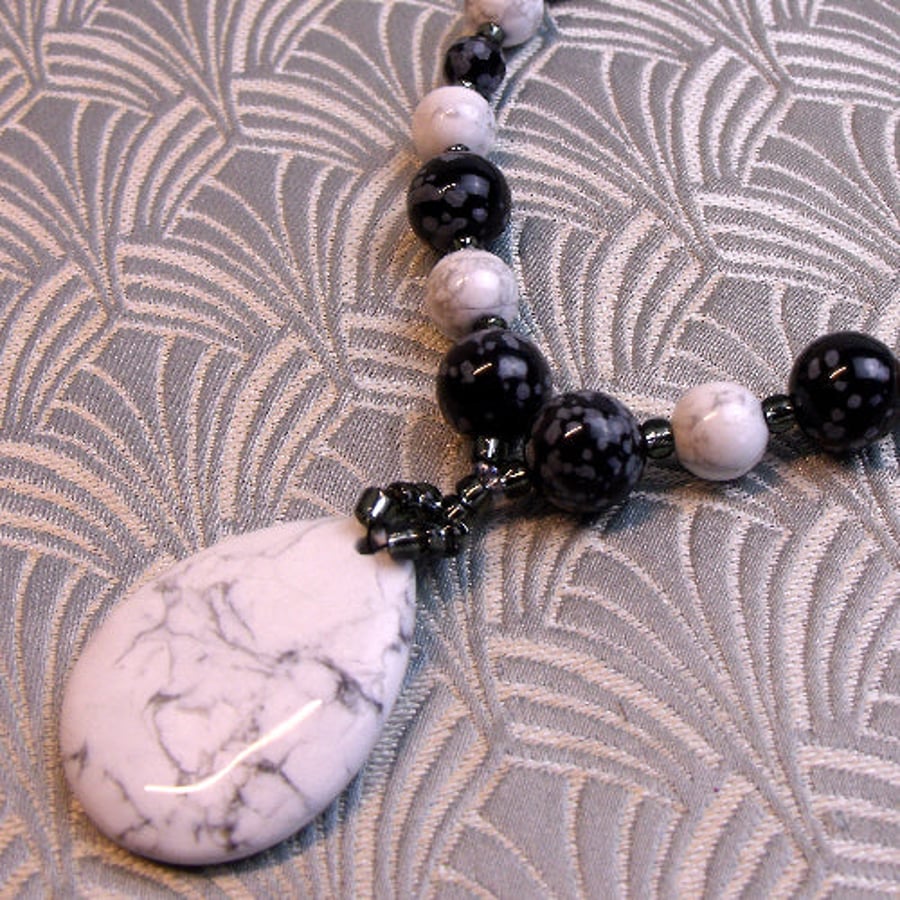 White Howlite Necklace White Jewellery White Pendant Necklace spsa13 Very well made.