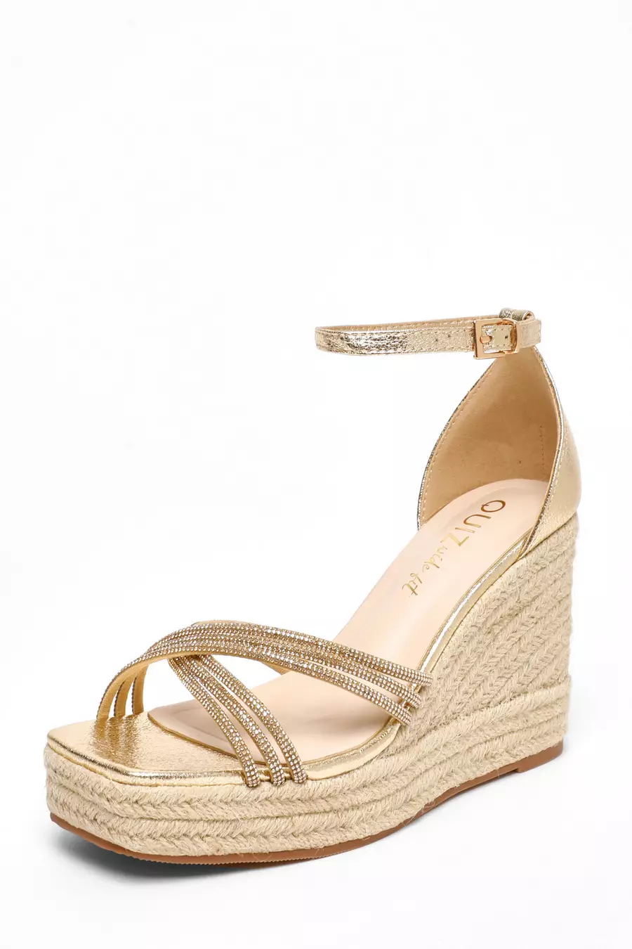 Wide Fit Gold Diamante Cross Strap High Woven Wedges QUIZ Clothing Very well made.