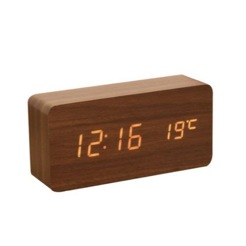 Wooden LED Digital Clock Alarm Clock Time Thermometer Triangle Calendar USB AAA Very well made.