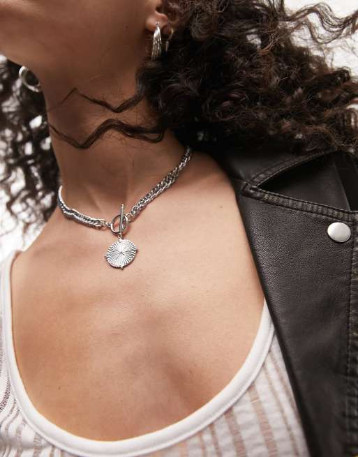 Topshop stainless silver coin t bar necklace Very well made.