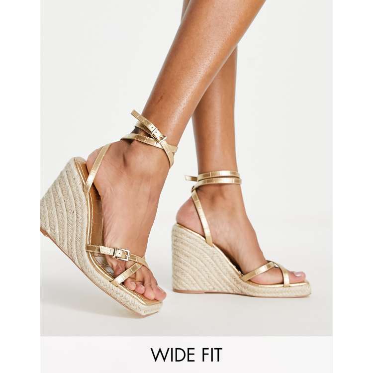 Topshop Wide Fit Wilma high espadrille wedge in gold Very well made.