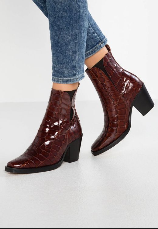 Topshop Mason Croc Effect Leather Western Ankle Boots UK4 EU37 US6.5 Very well made.