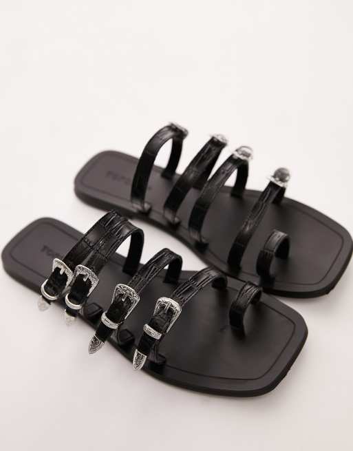 Topshop Keira leather western buckle sandals in Black Very well made.