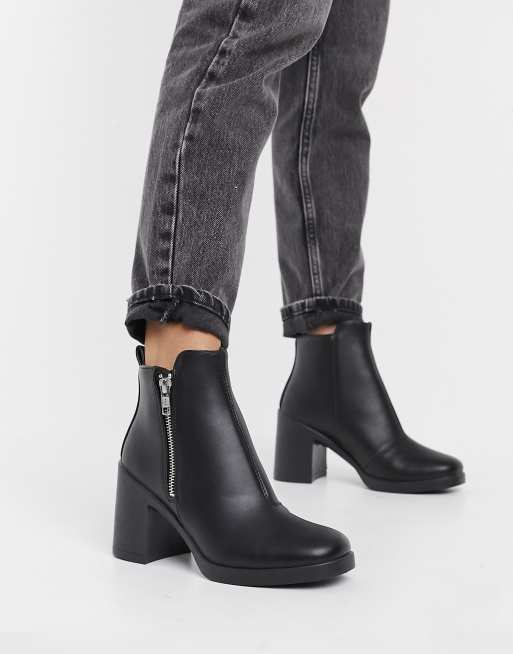 Topshop zip detail chunky heeled boots in black Very well made.