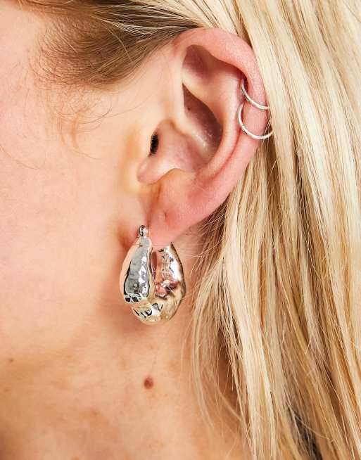 Topshop Elio curved hoop stud earrings in matte silver ASOS Very well made.