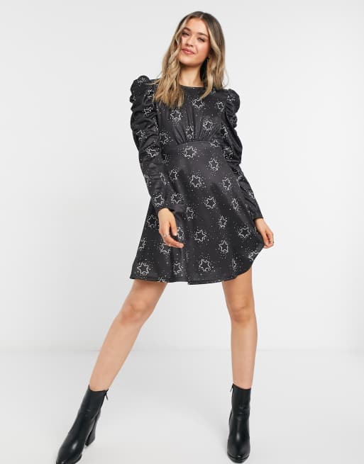 Topshop star print jersey flippy mini dress in monochrome Very well made.