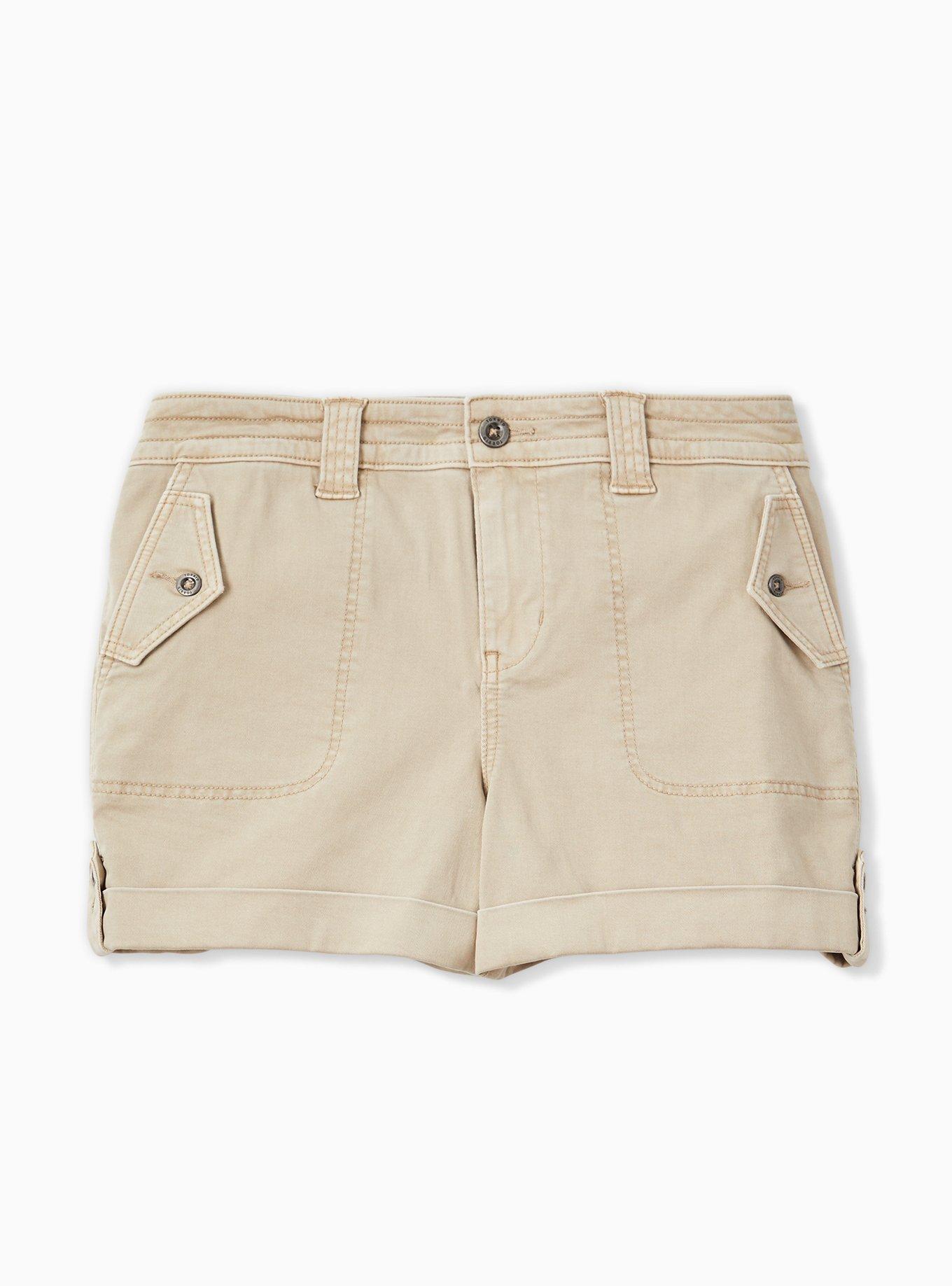 Torrid Womens Shorts Beige Stretch Khaki Cheeky Mid Chino Hot Pants Plus Size 24 Very well made.
