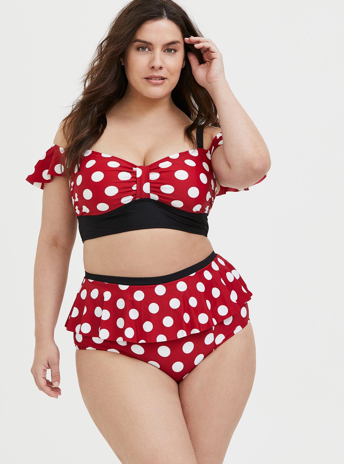 Plus Size Disney Minnie Mouse Red Polka Dot Cold Shoulder Wireless Bikini Top Torrid Very well made.