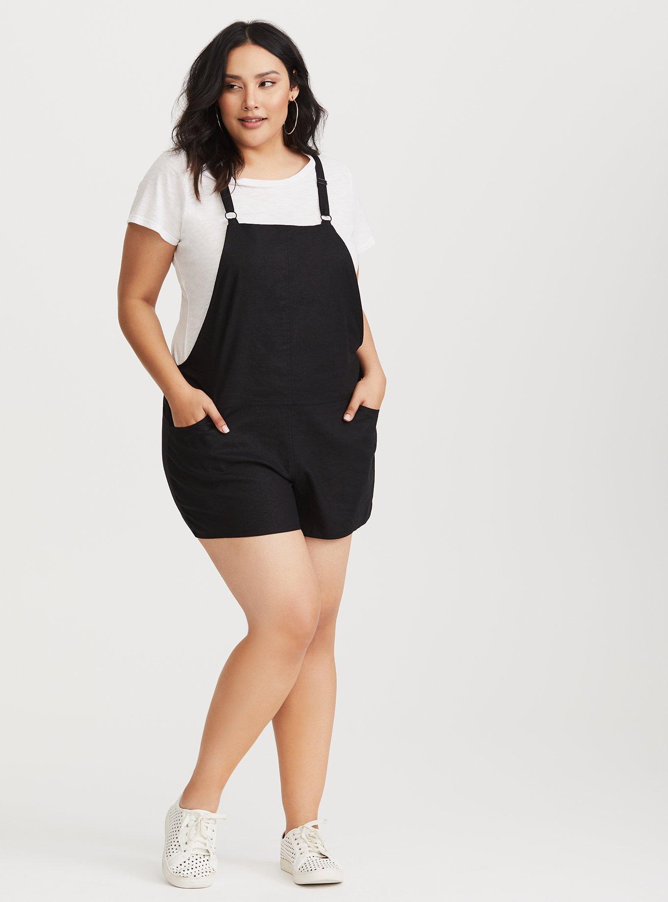 Plus Size Black Stretch Linen Shortall Torrid Very well made.