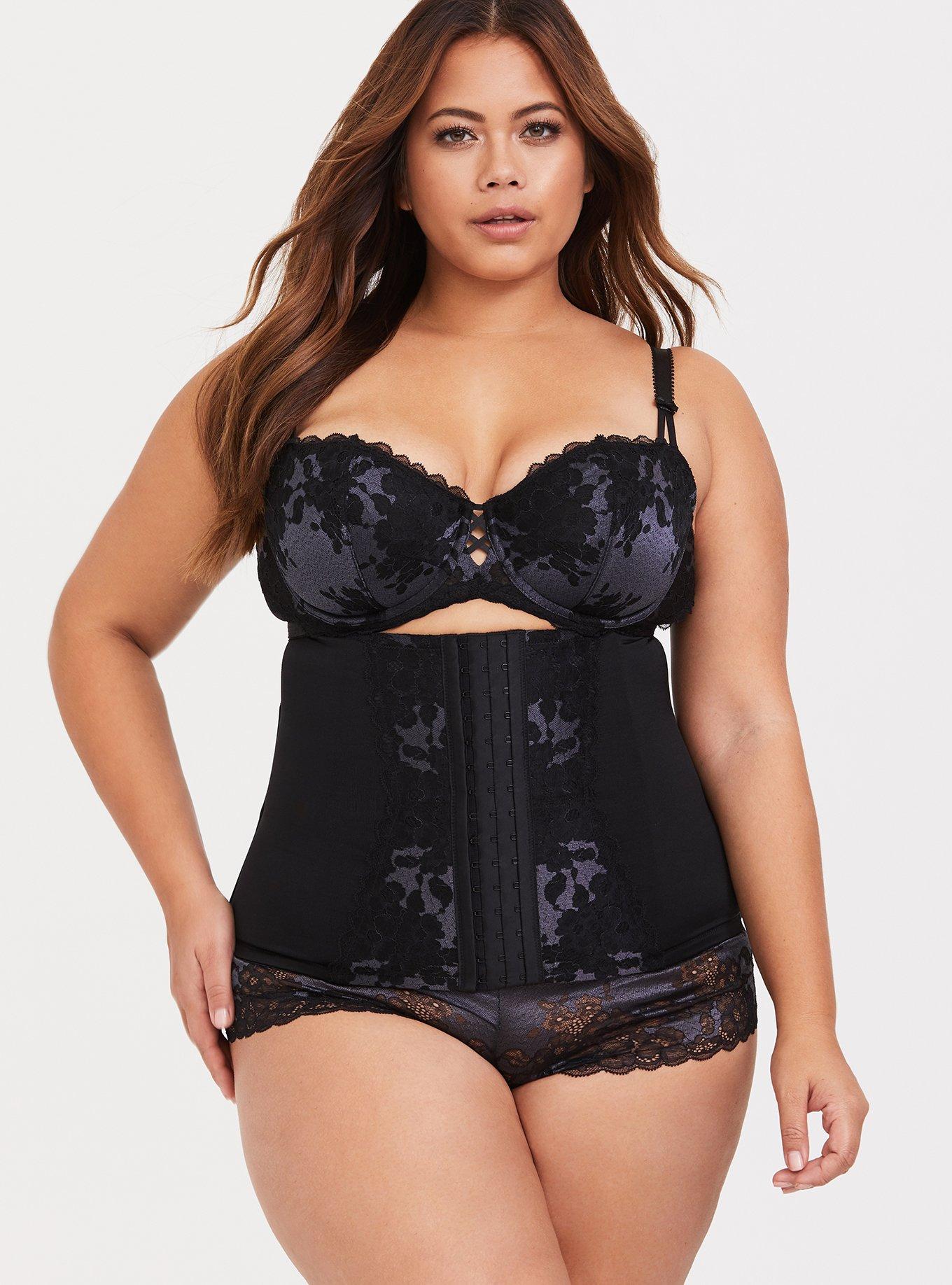 Plus Size Black Blue Microfiber Lace Waist Cincher Torrid Very well made.