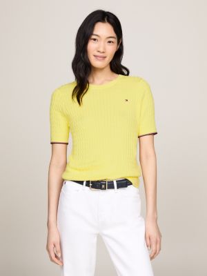 Cable Knit Slim Short Sleeve Jumper Yellow Tommy Hilfiger Very well made.