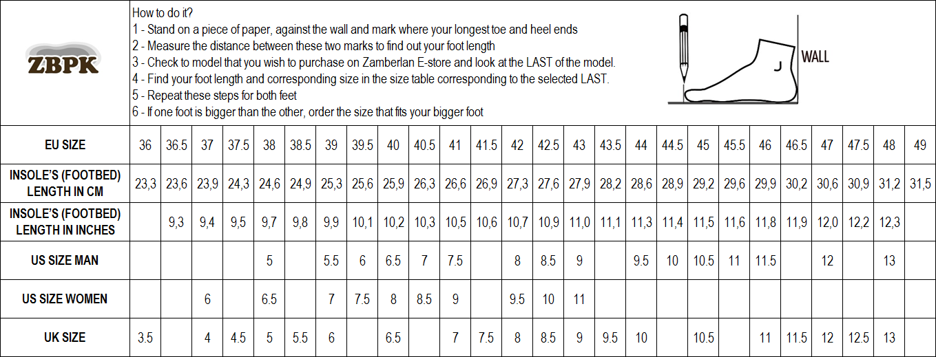Zamberlan Sizing Charts by Last Very well made.