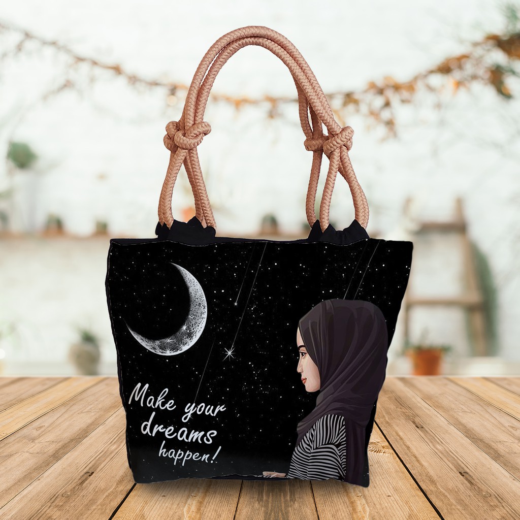 tote sumbu tali Tas tote bag tali sumbu hijab motif print Very well made.