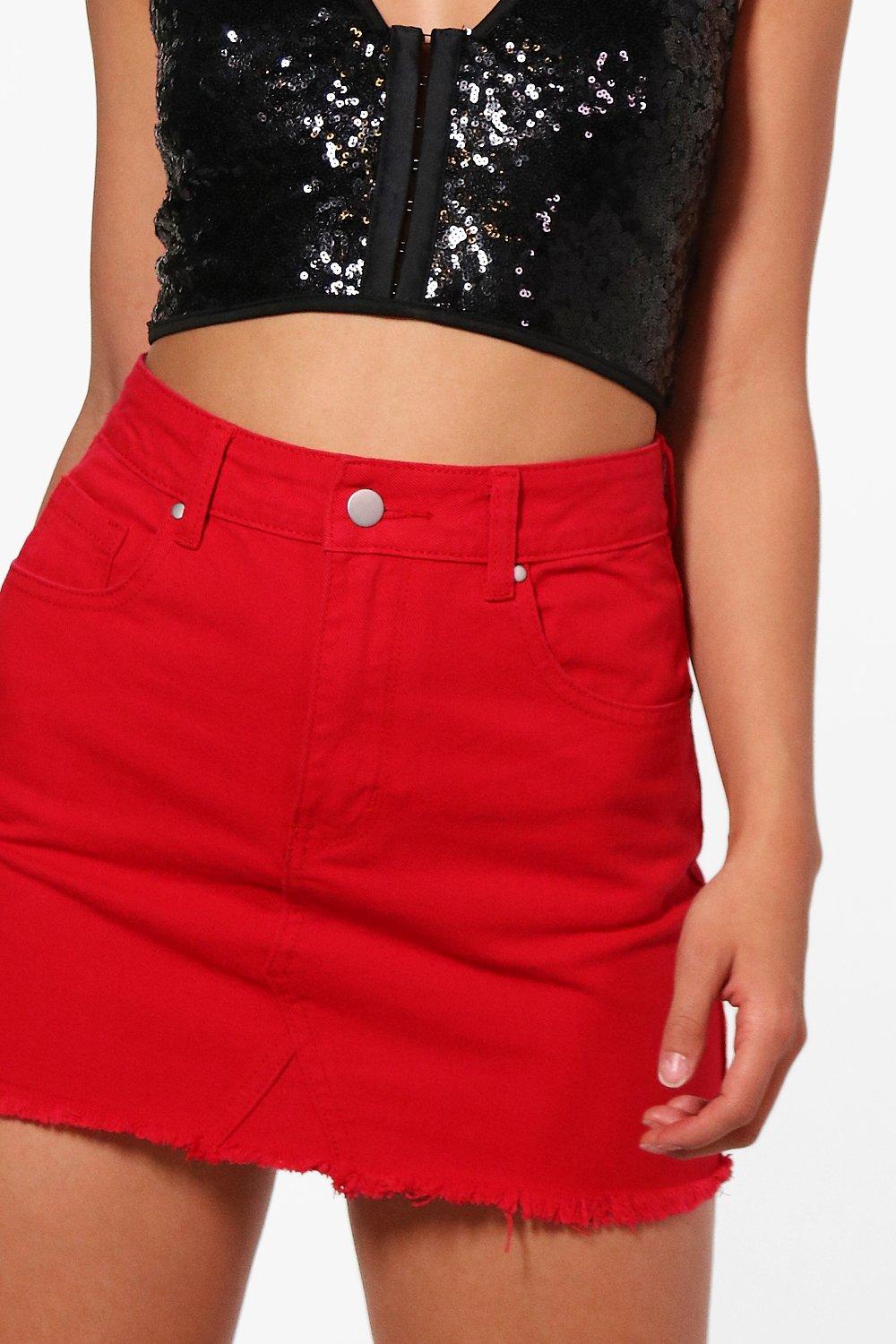 Red Denim Mini Skirt Very well made.