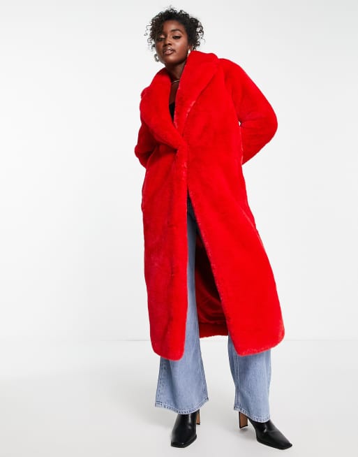 Ever New oversized faux fur midi coat in pillarbox red Very well made.