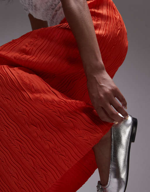 Topshop Plisse Midi Skirt in Red Very well made.