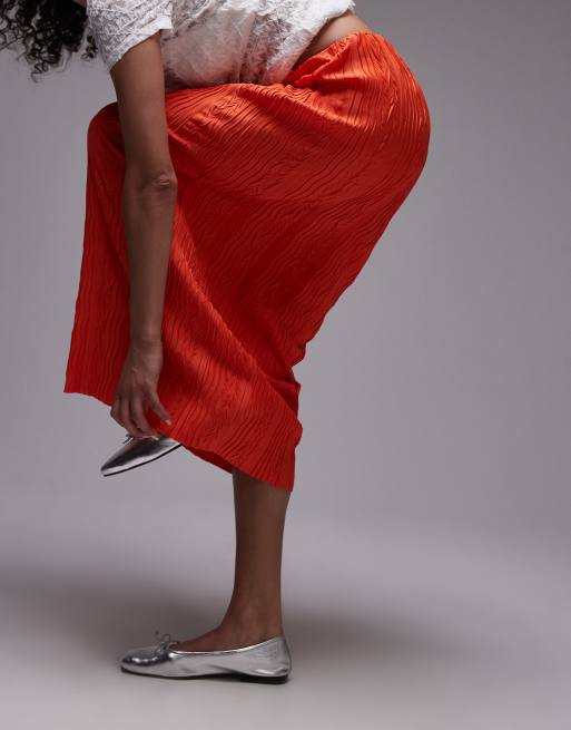 Topshop Plisse Midi Skirt in Red Very well made.