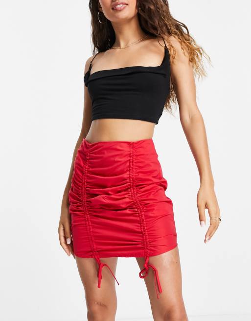 Missguided Petite ruched detail mini skirt in red part of a set Very well made.