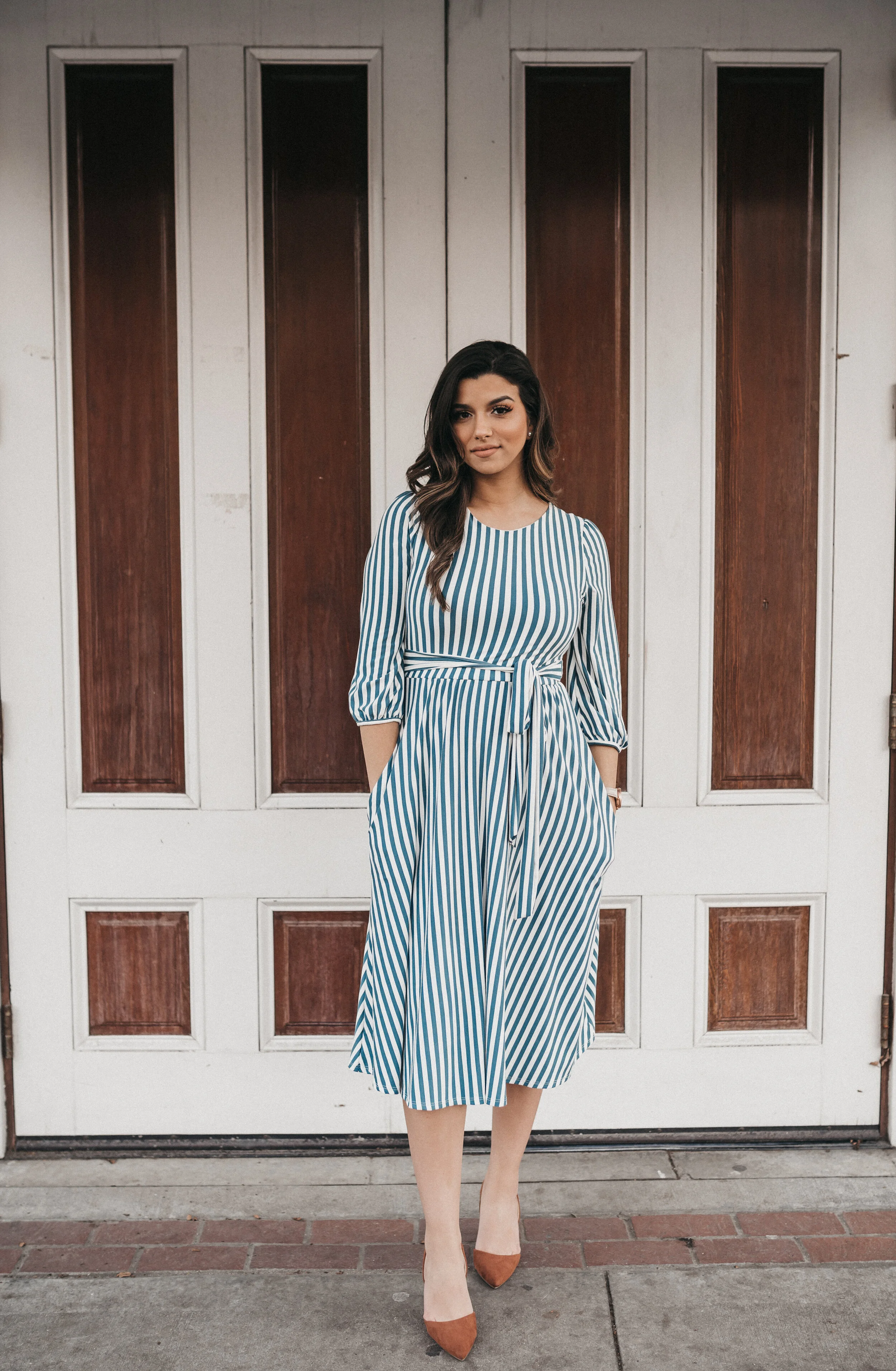 Blue Ribbon Striped Mocha Midi Dress Purple Door Commerce GA Purple Door Boutique Very well made.