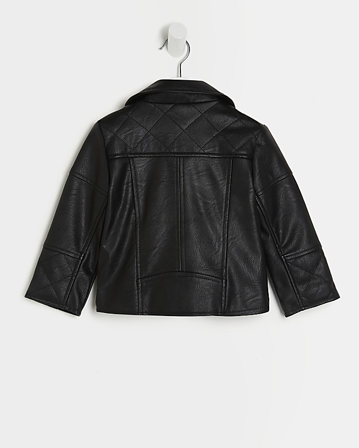 Mini Girls Black Faux Leather Biker Jacket River Island Very well made.