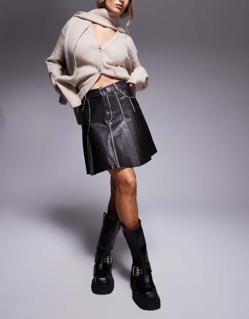 River Island faux leather pleated mini skirt in distressed black ASOS Very well made.