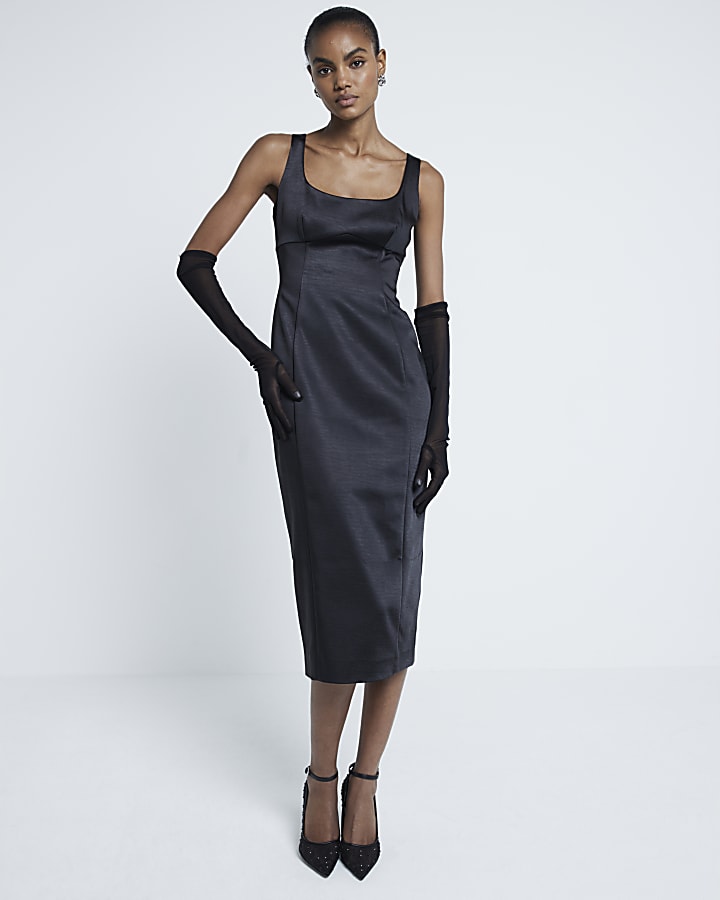Black Satin Tailored Midi Dress River Island Very well made.