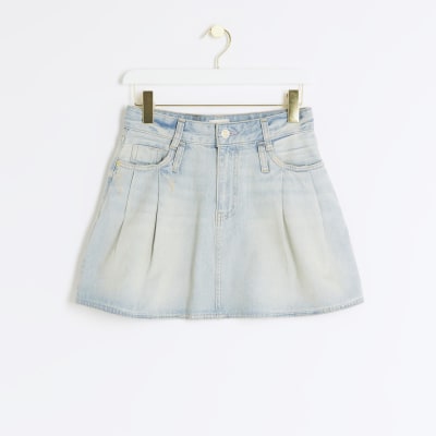 River Island denim pleated mini skirt in lightwash blue ASOS Very well made.