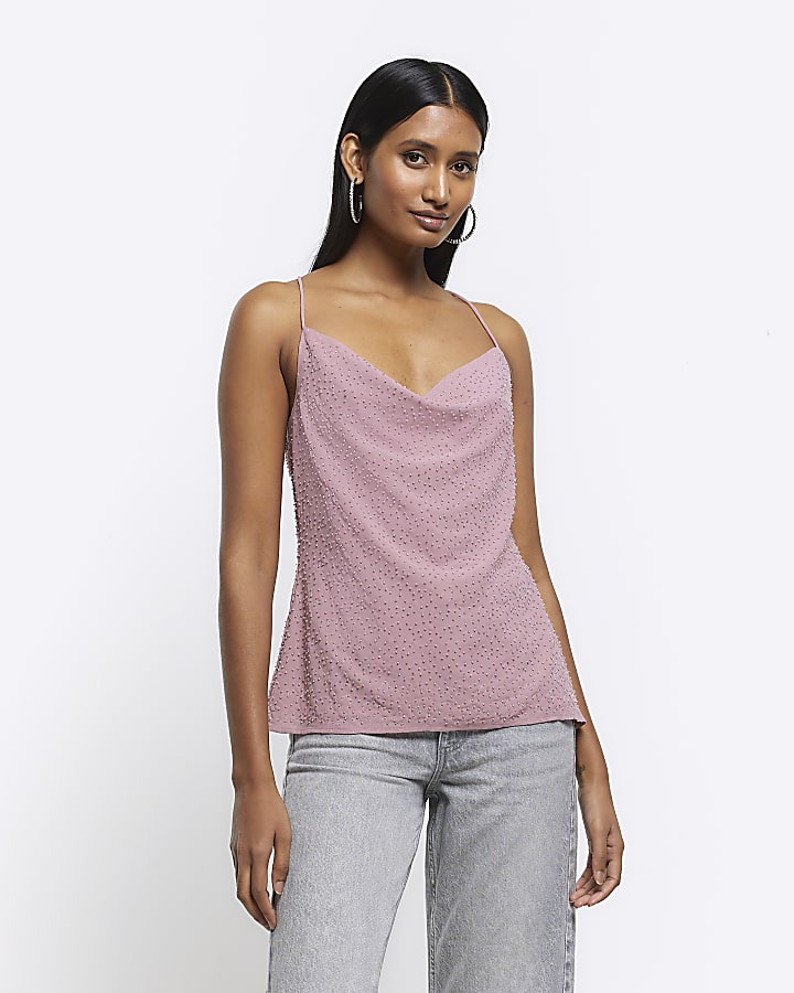 Pink beaded cowl neck cami top River Island Very well made.