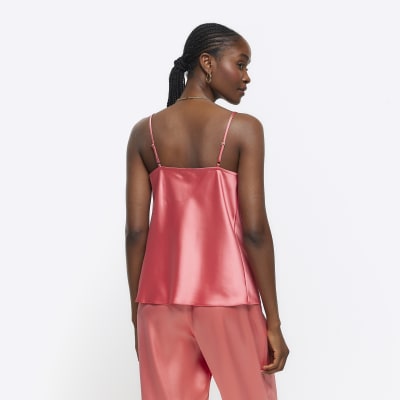 Coral satin cowl neck cami top River Island Very well made.