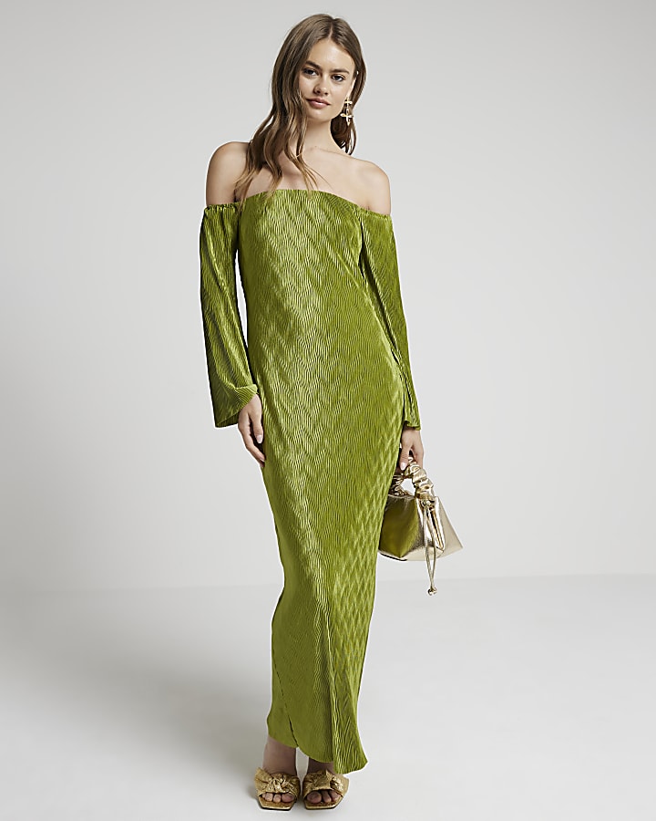 Green plisse wave bardot bodycon maxi dress River Island Very well made.