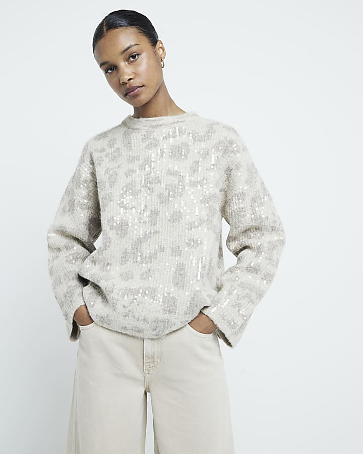 Beige Leopard Print Sequin Jumper River Island Very well made.