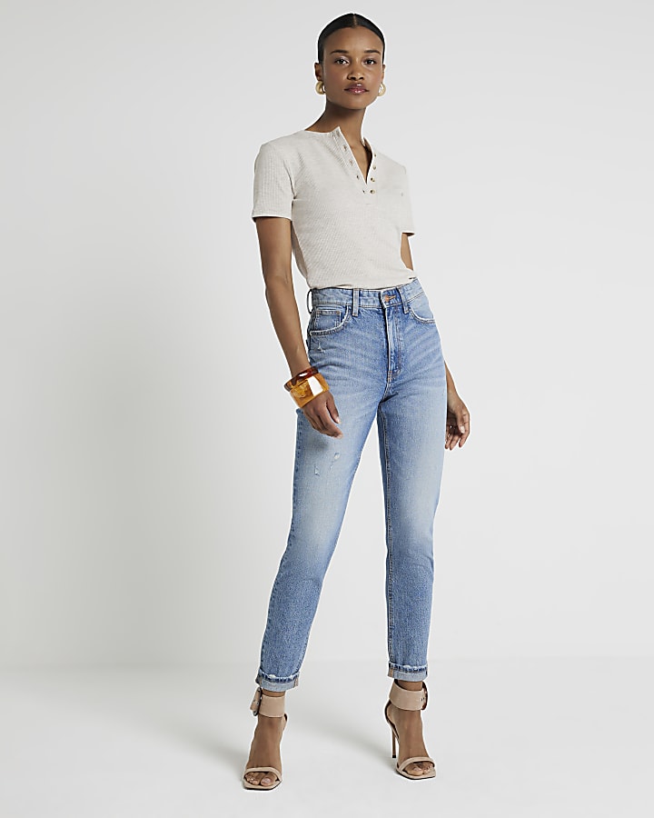 Blue denim high waisted sculpt mom jeans River Island Very well made.