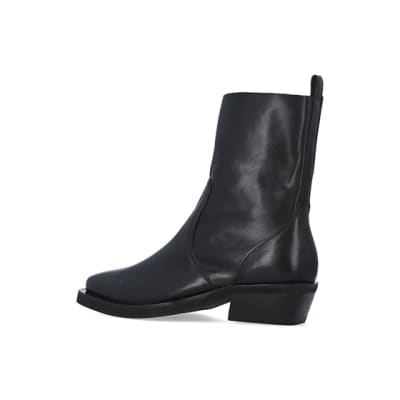 Black leather western ankle boots River Island Very well made.