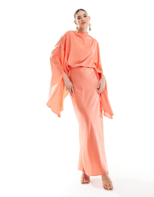 ASOS DESIGN Robe longue superposee en satin Corail ASOS Very well made.