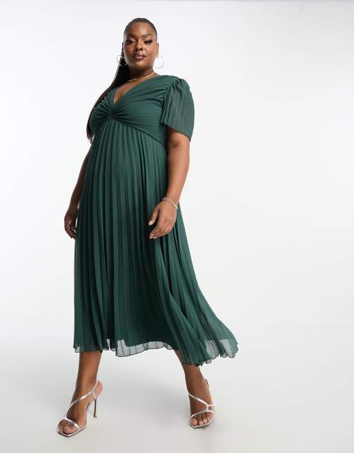 ASOS DESIGN Curve Robe mi longue plissee a manches evasees Vert sapin ASOS Very well made.